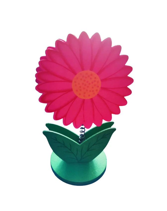 11 cm magas, színes fa virágok. A szirmok mögött csipesz található, amelybe üzeneteket, jegyzeteket lehet tenni.