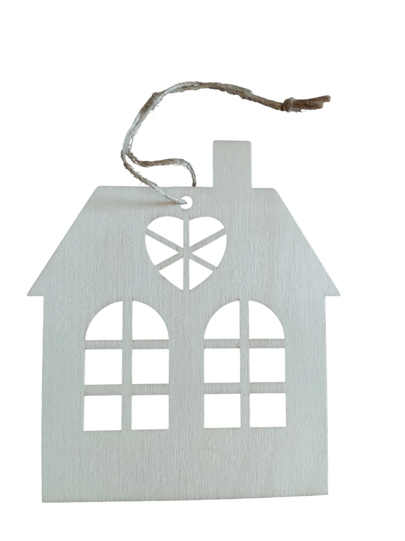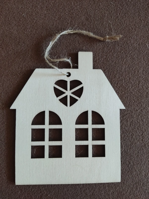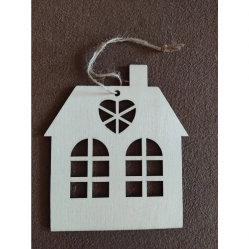 Kb. 9x10 cm-es, felakasztható, dekorálható fa házikó.