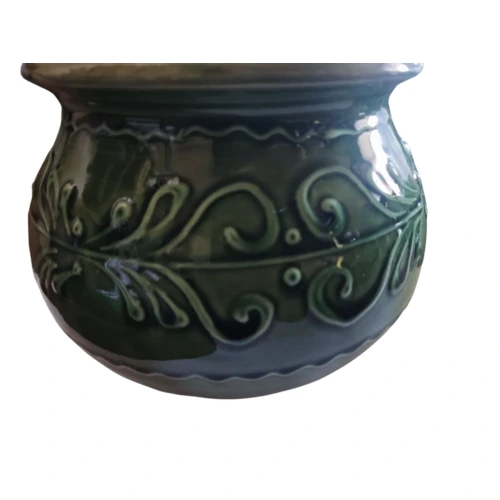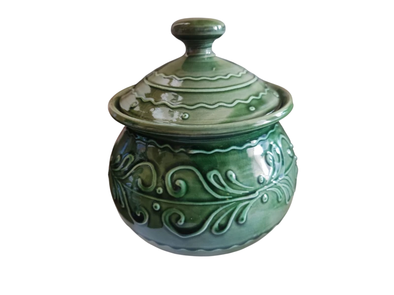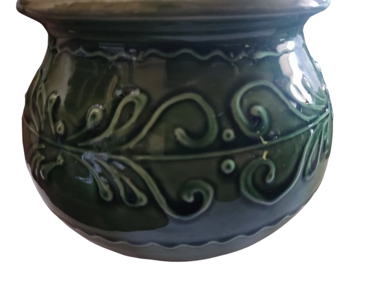 Gyönyörű zöld, mintás tároló, fedővel.
