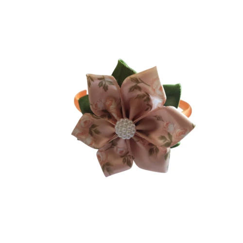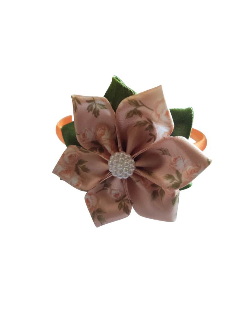 Narancssárga hajpánt szatén szalagokból készült virággal.