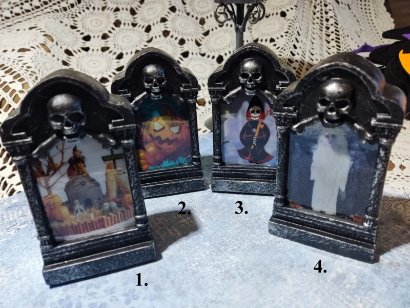 Elemmel működő, világító Halloween lámpások - 4-féle mintával.