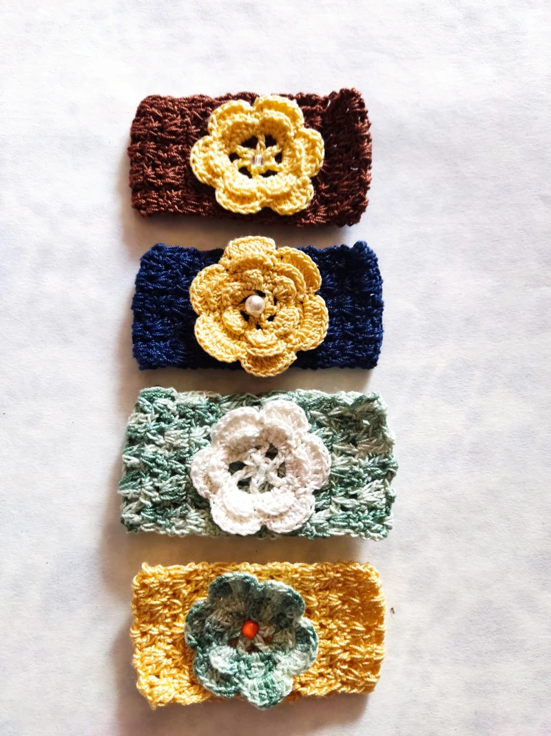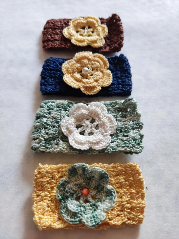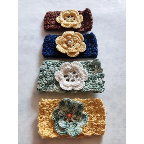 Horgolt karkötő kislányoknak - csat nélkül, színes virágokkal.