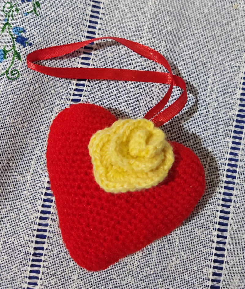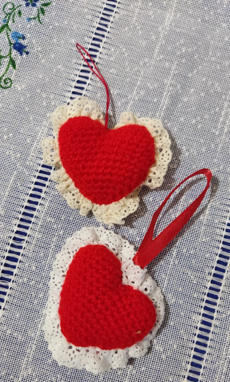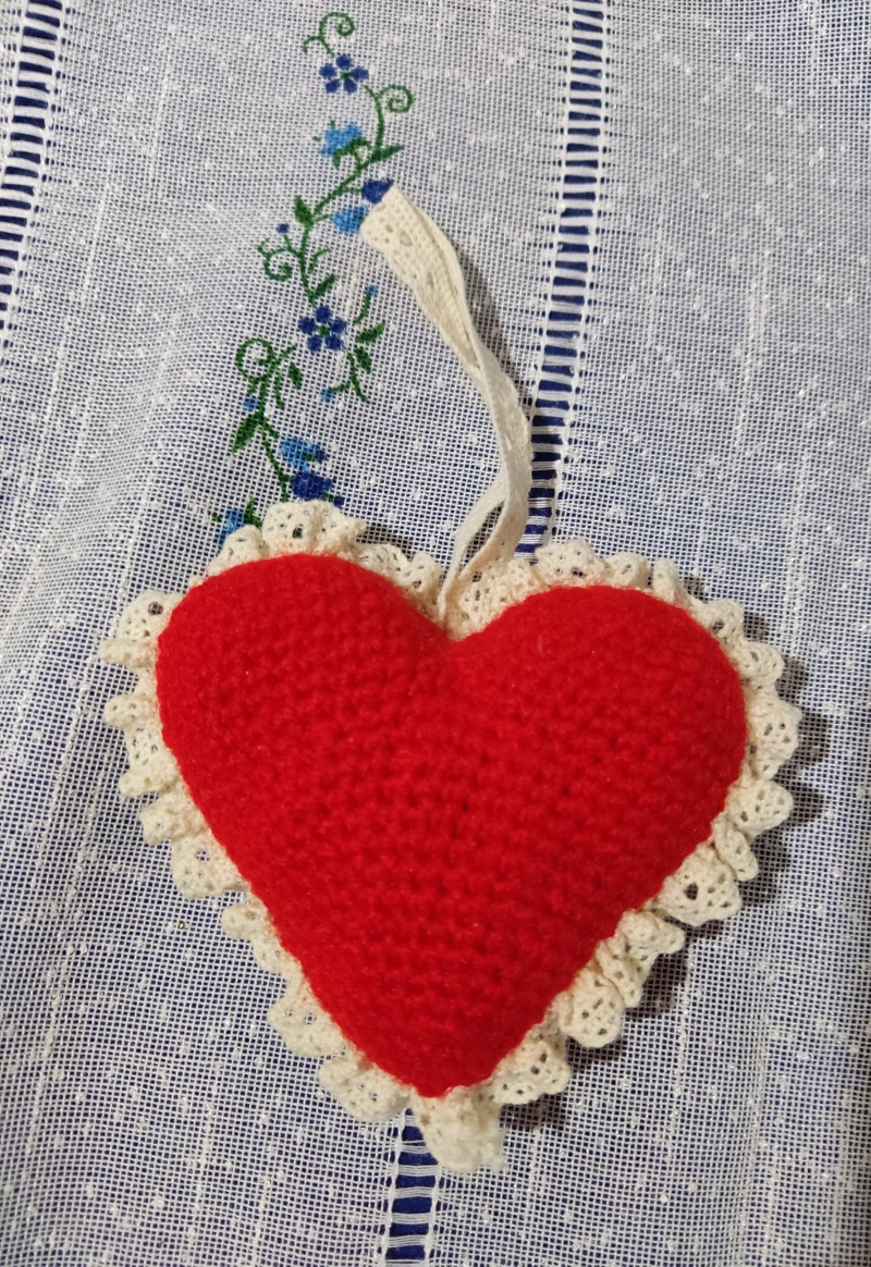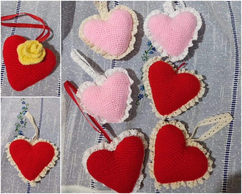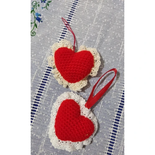 7x8 cm-es horgolt szív, vatelinnal kitöltve - több variációban kapható: