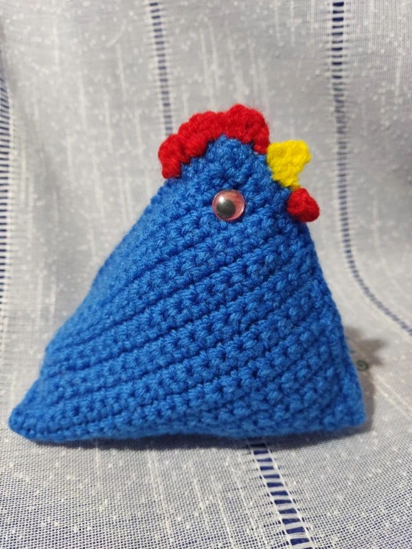 Horgolt tyúk - ragasztott mozgó szemekkel.