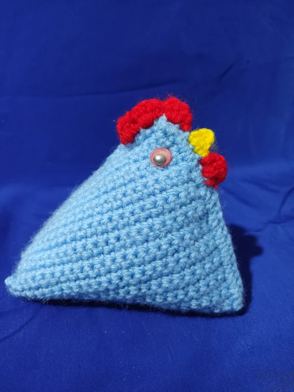 Horgolt tyúk - ragasztott mozgó szemekkel.