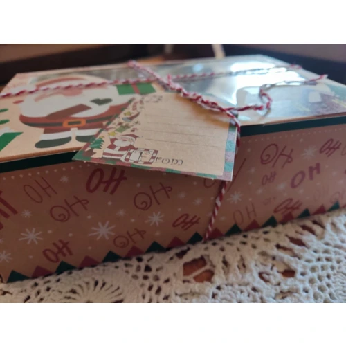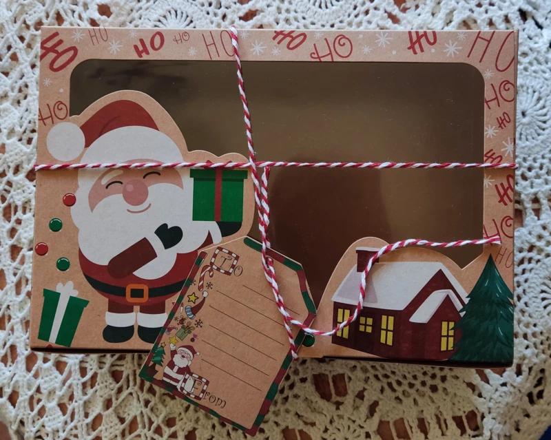 Barna, mintás, ablakos doboz a karácsonyi ajándékoknak!
