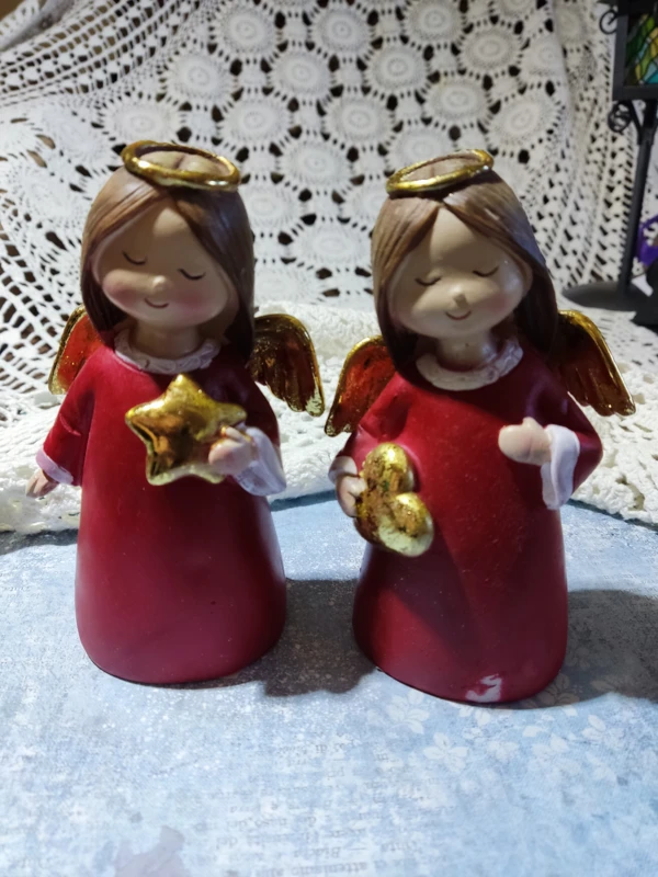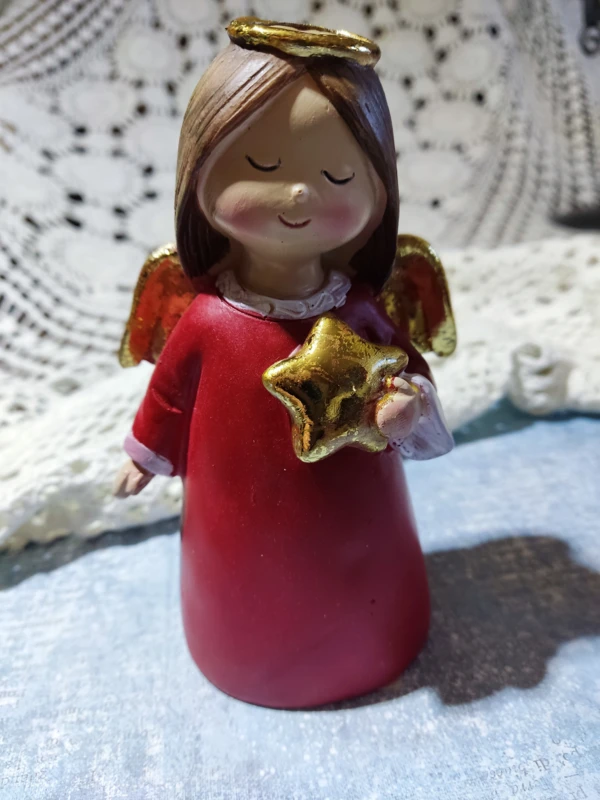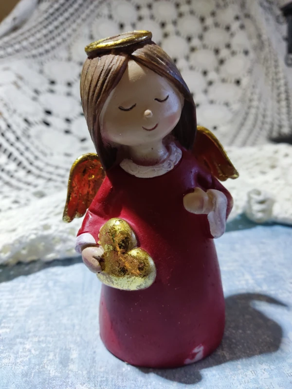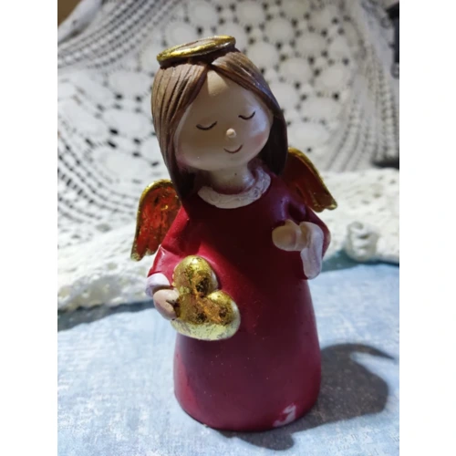 14 cm-es piros ruhás angyalka arany glóriával, szárnnyal. Két variációban választható: