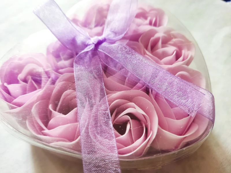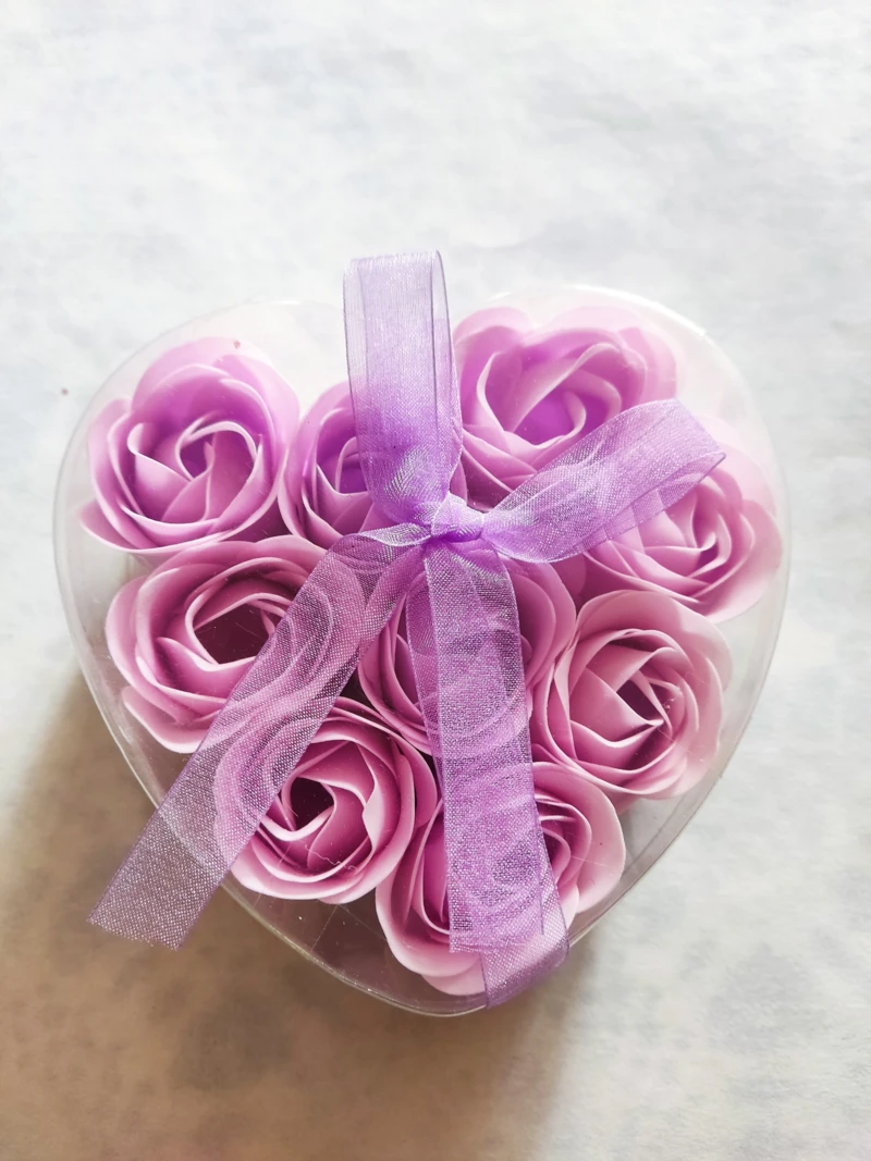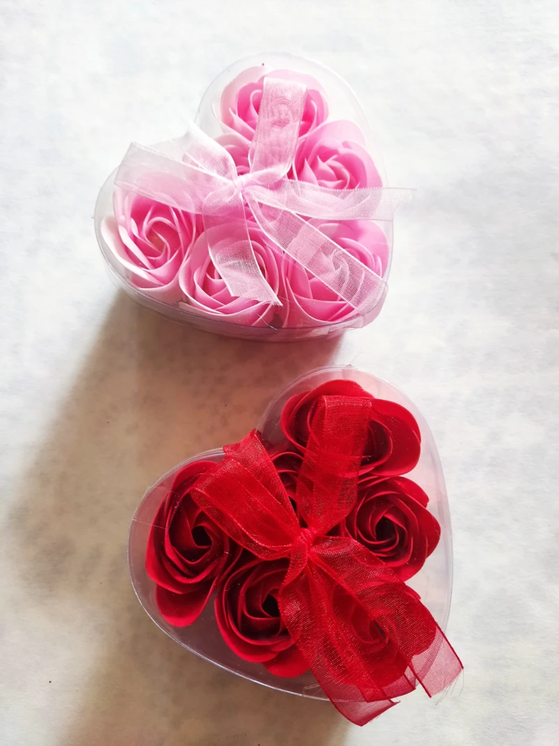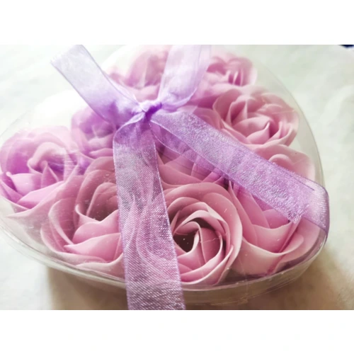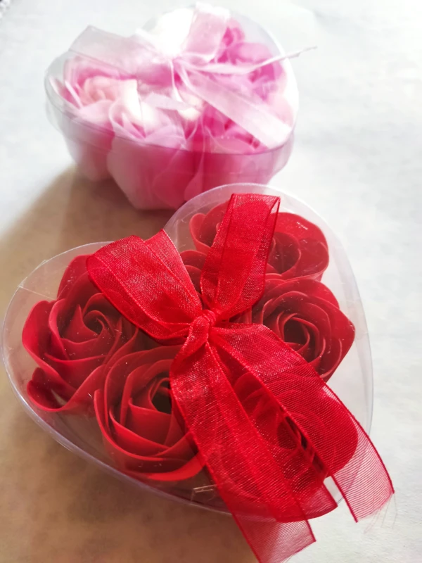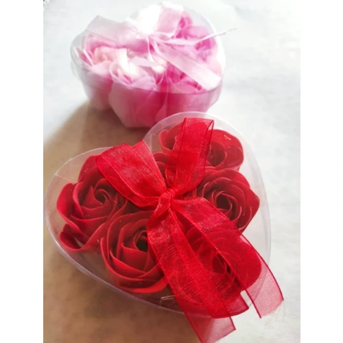 Szappanvirág. 6 db-os készlet szív alakú műanyag dobozban. Piros és rózsaszín színekben kapható.