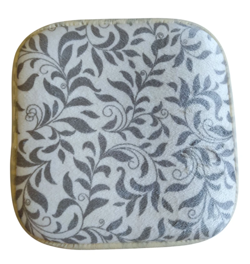 Fehér alapon szürke levélmintás ülőpárna. Mosógépben mosható.