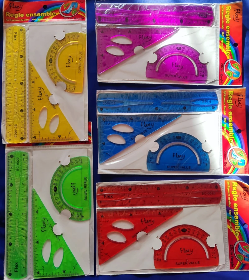 3 db-os flexibilis vonalzó készlet 5-féle színben.