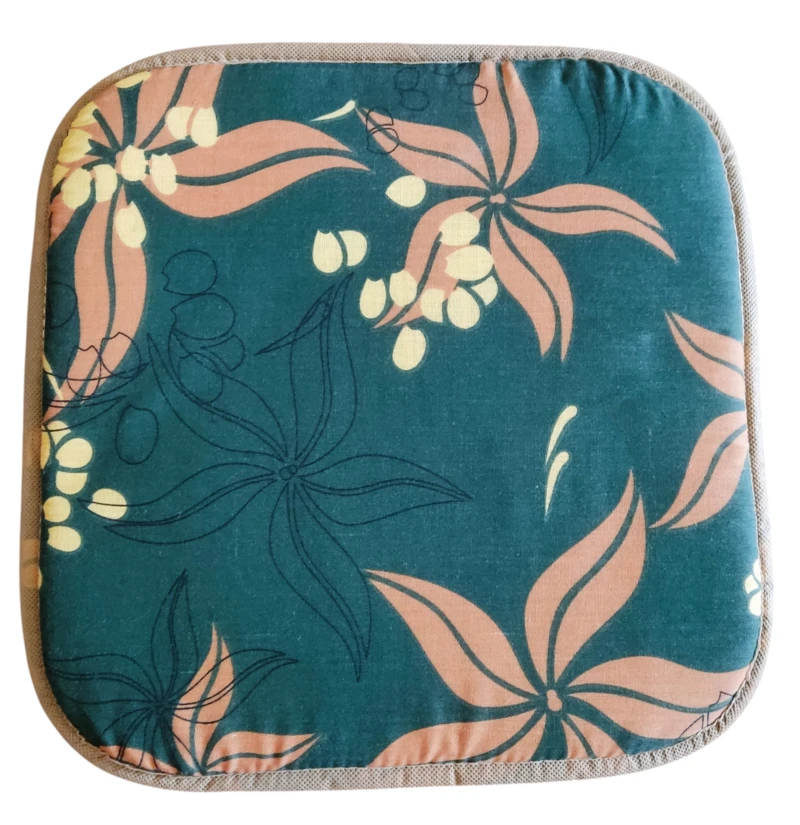 Zöld alapon levélmintás ülőpárna. Mosógépben mosható.